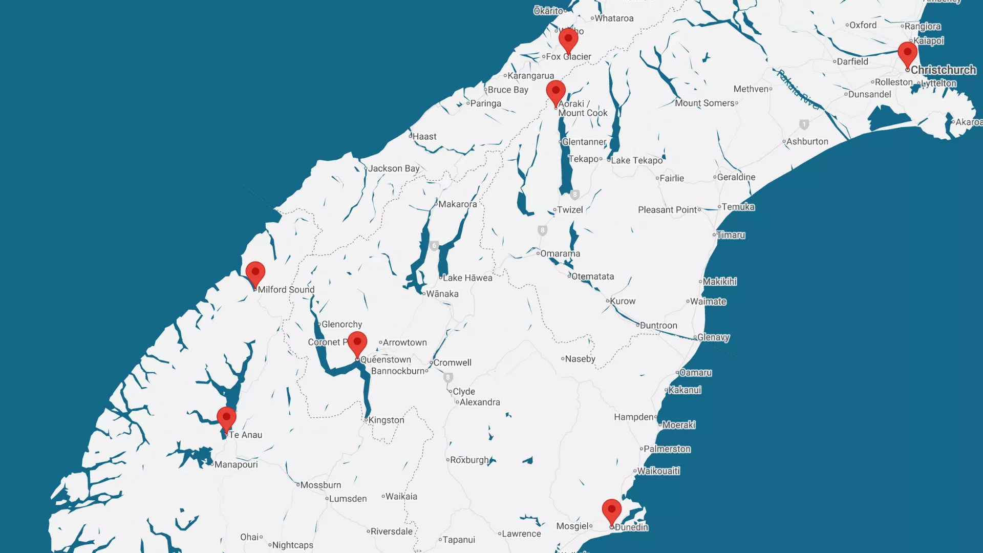 Breakfast at hotel. Drive back across Haast Pass, through Wanaka and Cromwell, then over the Lindis Pass into Mackenzie Country. Stop at Lakes Pukaki and Tekapo before arriving in Christchurch by evening.